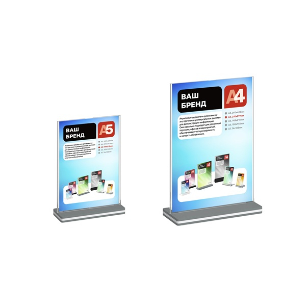 Двухсторонний вертикальный держатель информации формата А4 и А5 с прямой установкой кармана под углом 90°